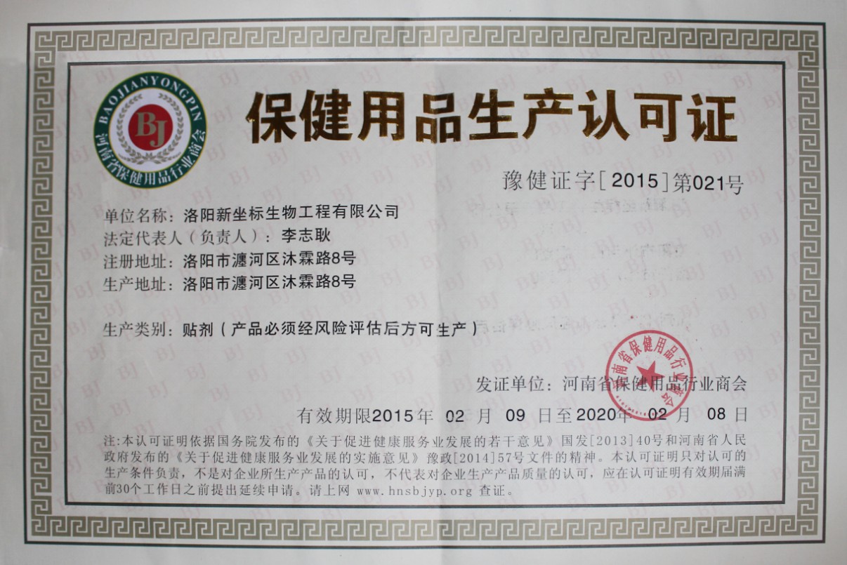 2015年換發(fā)保健用品生產(chǎn)認可證